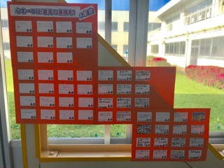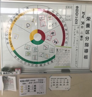 毎日、給食委員会が給食の献立や食材を掲示したり、食器の後片付けを調べて掲示してくれています。