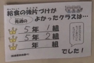 なんと、後片付けがきれいなクラスは5年生の1・2フィニッシュでした!!