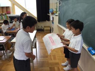 5月30日に、3年2組は、「全力」でがんばる5、6年生に応援メッセージを書きました。