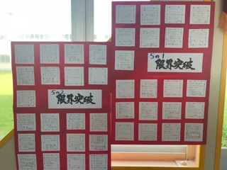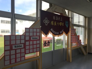 児童玄関には、5・6年生の本番への思いが飾られました!