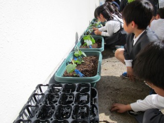 2018年5月15日 18時28分2年1組が野菜を植えていました!