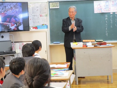 学校評議員の岩﨑さんがゲストティーチャーとして、2組でもお話しして下さいました。