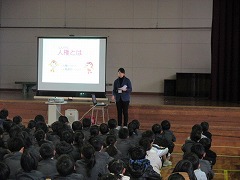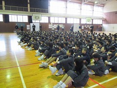 相手の気持ちを考えることの大切さを一人一人考えてもらおうと全校集会を行いました。
