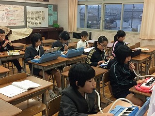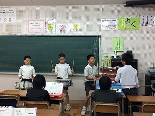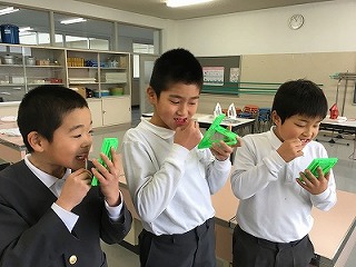 2017年12月14日 23時15分4年生は音楽の時間に「茶色の小びん」の合奏をしました。グループに分かれ練習から意欲的です。金管鼓笛で毎日頑張っている子どもたちなので、音楽の合奏も「音を合わせる」ことを楽しみにしていました。両クラスともとてもいい演奏をすることができました。振り返りに「心も一つになったようですごく嬉しかったです。」と書かれていました。また1つ成長した4年生です。