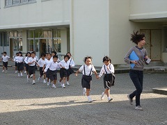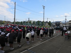 プール上のトキワ塗装付近の避難場所まで、全学年4分36秒で避難できました。