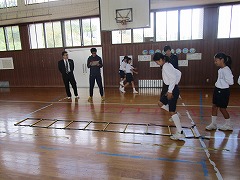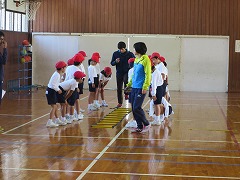 子どもたち(3年生、5年生)の体力がどこまで向上したのかの測定と指導に来ていただきました。