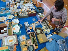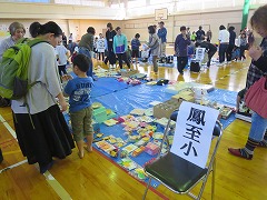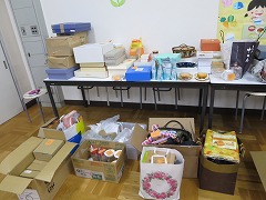 鳳至小学校のコーナーには、保護者、地域の皆様から提供された品物が多数ありました。