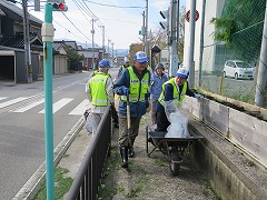 いつもお世話になっています「鳳至っ子見守り隊」の方々に花壇の土作りをしていただきました。