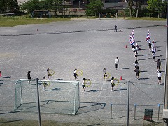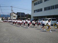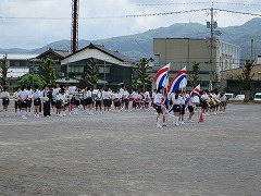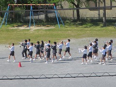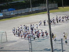5,6年生は、運動場でドリル演奏の練習をしました。