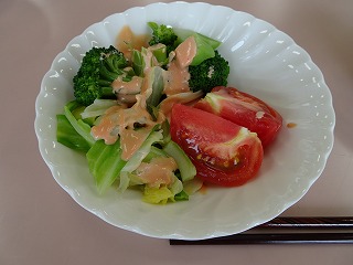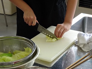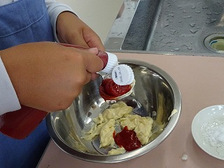 それぞれの班で食べたいサラダを考え、手順や分量を守りながら協力して作りました。