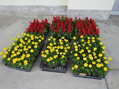 次は「マリーゴールド」「サルビア」の苗植えをします。