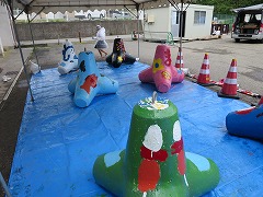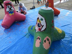 国土交通省及び輪島市役所のイベントで「ミニ消波ブロック」に絵を描きました。