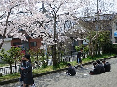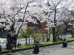 満開の桜の木の下で、理科の学習をしました。