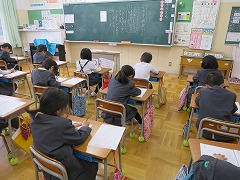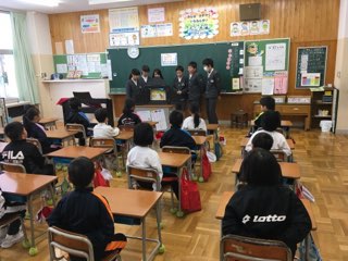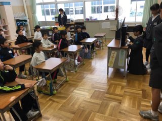 6年生が1年生に紙芝居の読み聞かせに行きました。