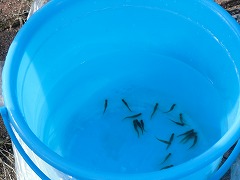 年明け、孵化した稚魚たちが元気よくペットボトルの中に泳いでいました。