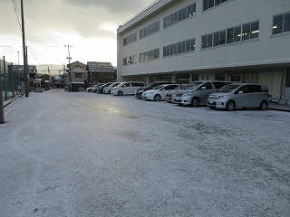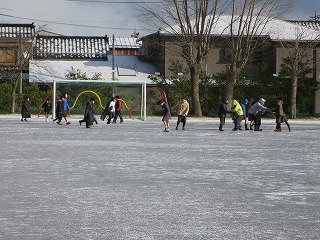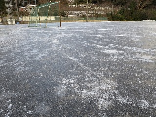 児童玄関前はもちろん、運動場までもが凍って大変なことに!