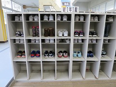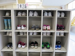 1年生の下駄箱に入っている靴がとても綺麗に並べられていました。