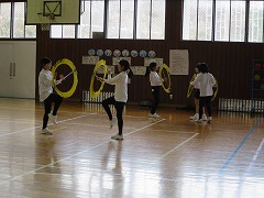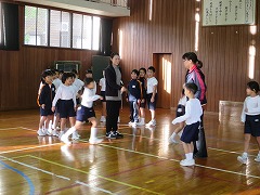 鳳至小学校では、朝の運動タイムで挑戦を続けています。