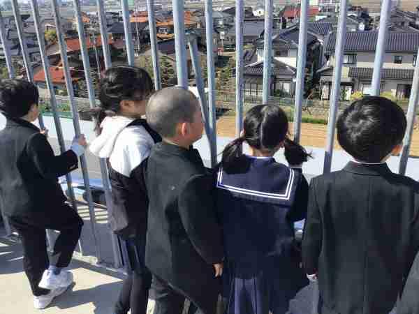 3年:学校の東西南北それぞれの様子を屋上から確認