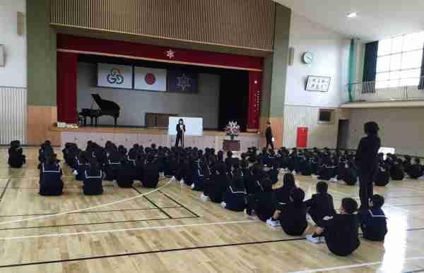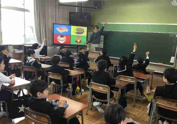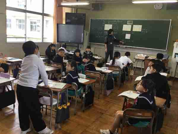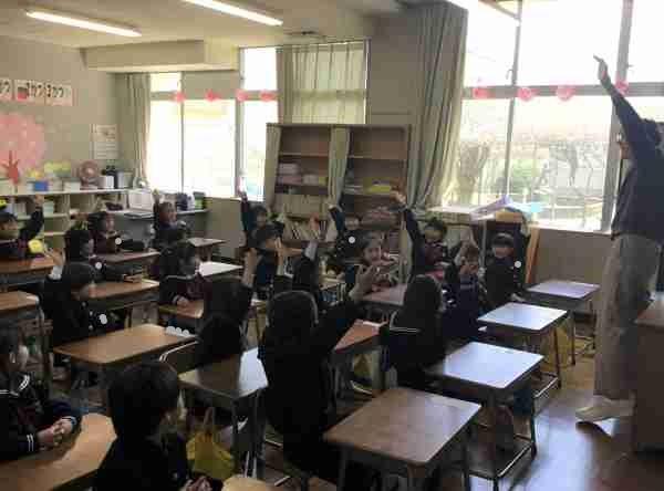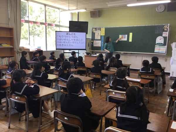 1・2年生が、ALTの先生と一緒に外国語活動をしました。英語でクイズをしたりゲームをしたりして、とっても楽しい時間でしたね。昼休みには英語での読み聞かせもありました。たくさん聞いて話して、いろんな国の言葉に親しんでいきましょう!