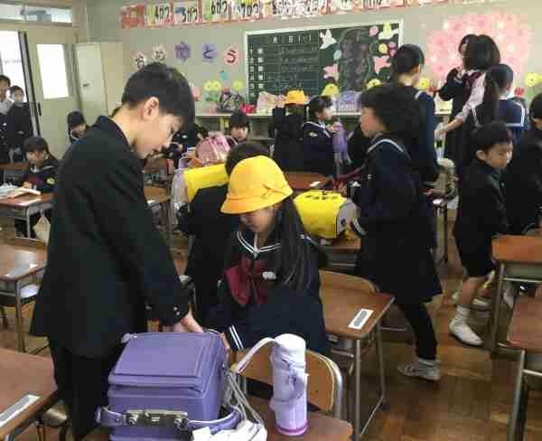 朝、6年生のお兄さんお姉さんが優しく朝の準備の仕方を教えてくれます。