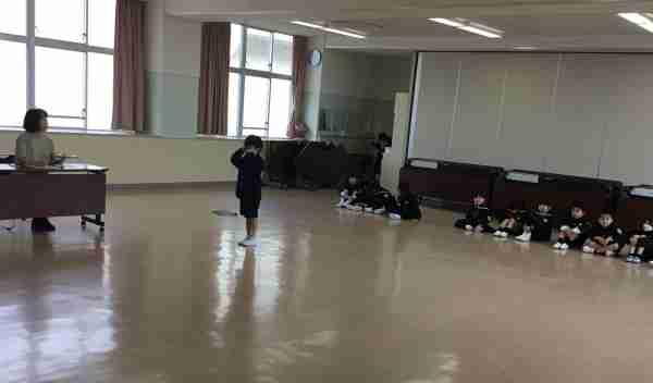 授業の始まりはしっかり立って「おねがいします」挨拶も上手です。