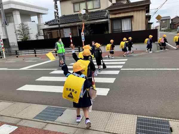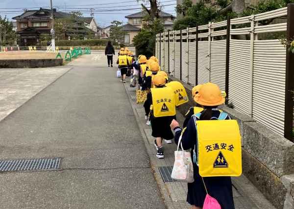 元気いっぱいの1年生が入学してきて、早くも1週間がたちました。黄色い帽子をかぶり、ランドセルを背負った1年生が、歩道を1列に並び、交通ルールを守って安全に歩いています。横断歩道で手を挙げて左右を確かめてから渡る姿は、本当に素晴らしいです。地域の皆様、いつも温かく見守ってくださりありがとうございます。保護者の皆様、毎日の送り出しや交通安全のお話ありがとうございます。これからも安全に気を付けて楽しい学校生活を送っていきましょうね。