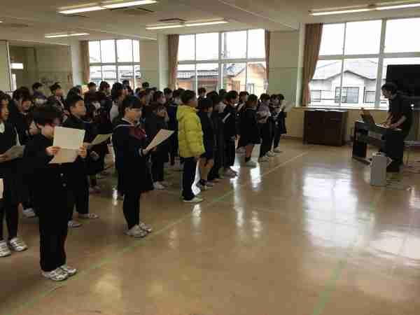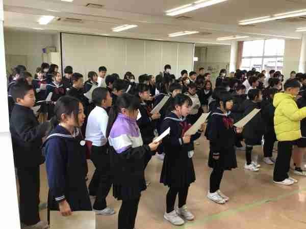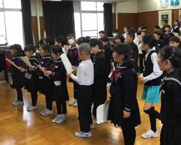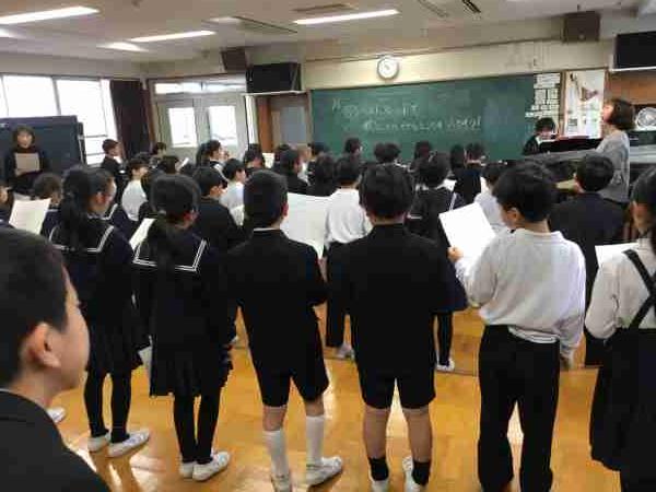 卒業式で歌う「ベスト・フレンド」の練習を合同で行いました。6年生に「ありがとう」の気持ちをのせたきれいな歌声が響きわたりました。