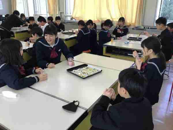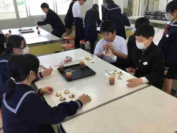 家庭科でゼリーを作りカナッペにトッピングして「ホットタイム」を行いました。卒業式まで残り1日です。思い出を語りながら楽しい時間を過ごしました。
