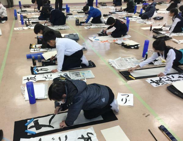 3学期はじめての授業は「書初め大会」です。どの学年もお手本をよく見ながら、集中して一文字一文字丁寧に書いていました。とても良い3学期のスタートを切ることができました。