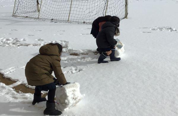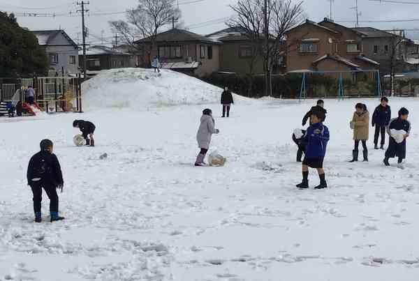 雪が積もりました。子供たちは、休み時間になると運動場に飛び出し、雪合戦をしたり雪だるまを作ったりして遊んでいます。みんなとっても元気です。