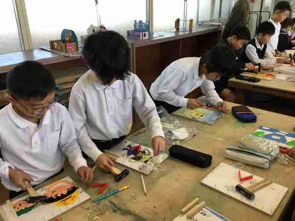 図工で釘打ちに挑戦しました。地域の先生にも入っていただき、丁寧に教えていただいたおかげで、皆さんまっすぐに釘を打つことができるようになりました。