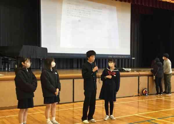 4月から根上中で一緒に学ぶ福岡小と浜小の6年生が集まって、持続可能な社会に向けて話し合いました。エネルギーやごみ問題について、どうしたら解決できるのか、いろんなアイディアを出し各グループが考えた納得解を交流しました。最初は緊張していましたが、話し合いが進むにつれ福岡小・浜小関係なく打ち解けた雰囲気になりましたね。中学校でも意見を出し合いみんなで伸びていくことを期待しています。