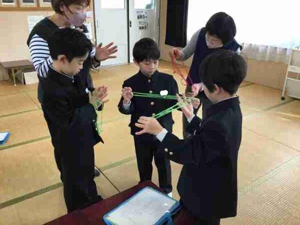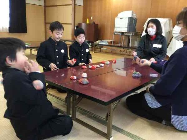 2025年1月23日 14時47分CSさんのご協力を得て「昔あそびの会」を開きました。なわとびやゴムとび、お手玉、あやとり、コマ回し、ふくわらいなどをして楽しみました。町の先生がとっても優しく教えてくださり、遊び方もすぐ覚えられましたね。