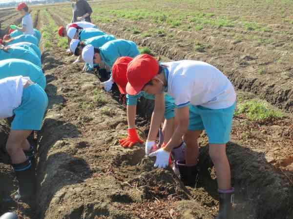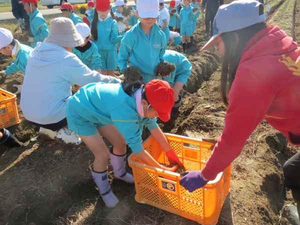 3年生が能美の宝である「丸いも」の収穫に挑戦しました。まず、岡本農場の方に掘り方を教えていただきました。丸いもを傷つけないように周りからやさしく掘ります。最後に丸いもを収穫かごにそっと入れて完了です。大きくて丸い丸いもがたくさんとれましたね。