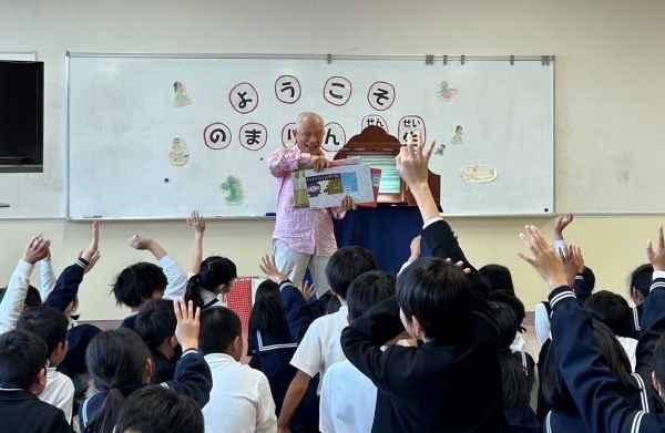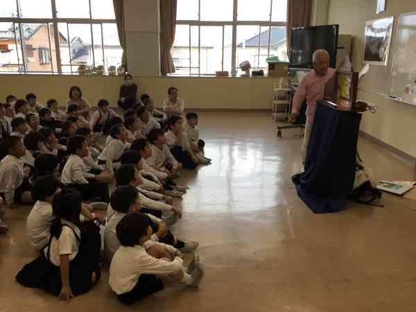 福岡小読書祭りの企画の一つ「のまりん劇場」が開催されました。面白い話や不思議な話、いろんなお話の紙芝居があり、とっても楽しかったですね。最後に全校を代表して、図書委員長さんからお礼のリースを渡しました。のま先生、来年も楽しい紙芝居待っています。
