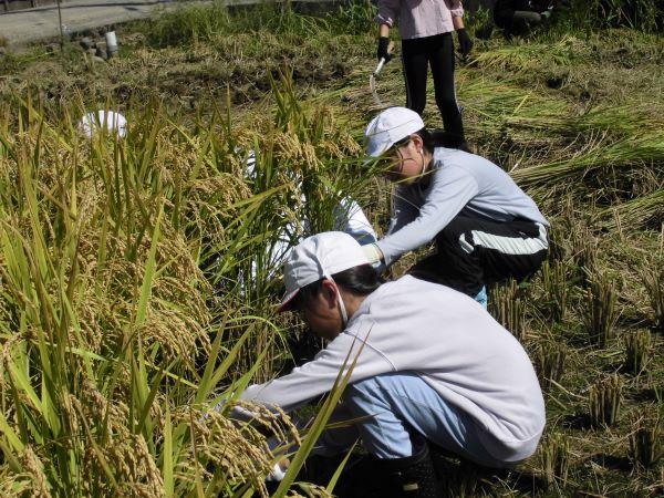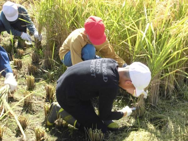 岡元農場さんの協力を得て「稲刈り」を行いました。一株ずつ鎌で刈ったあと、コンバインで脱穀します。一粒のお米も無駄にしないよう、子どもたちは本当に丁寧に稲刈りを行っていました。保護者の方もたくさん応援に来てくださり、ありがとうございます。食べ物をつくることの大切さと大変さをしっかり学んだ1日でした。