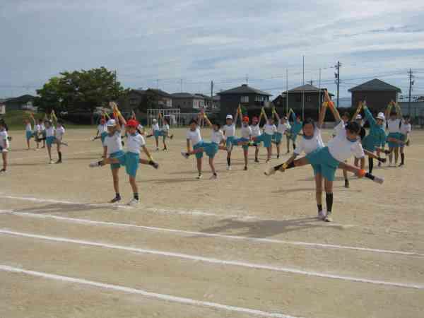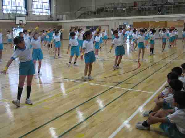 明日はいよいよ運動会です。1時間目に開閉会式の練習、そして5時間目には全校で高学年の演技を鑑賞しました。真剣な目とリズムの良いダンスを見て、1~4年生も自分たちも高学年に負けないくらい頑張ろうと気持ちを新たに持つことができました。明日の運動会が今から楽しみです。