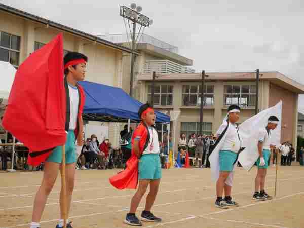 本番と同じように並んで、全校応援練習がありました。赤団・白団どちらも張りのある声でかっこいいです。毎朝の練習の成果が出ています。