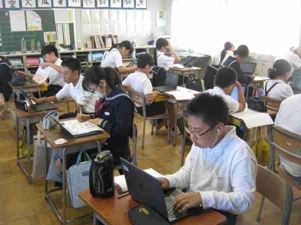 CBTとは「Computer Based Testing」の略称で、コンピュータを使った試験方式のことです。2027年度から全国学力・学習調査がCBT方式に移行することを受けて、4・5・6年生が標準学力調査をCBT方式で挑戦しました。動画や音声もあり、子どもたちはキーボードで文章を入力したり、タッチパネルで回答を選択したりしていました。