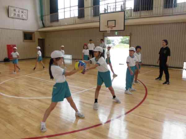 今年度、福岡小学校は県の指定を受けて「投げる力」の向上に取り組んでいます。専門の先生から、遠くにボールを投げるために必要な体の動きをタオルを使って教えていただきました。みんなきれいなフォームで投げられるようになりました。