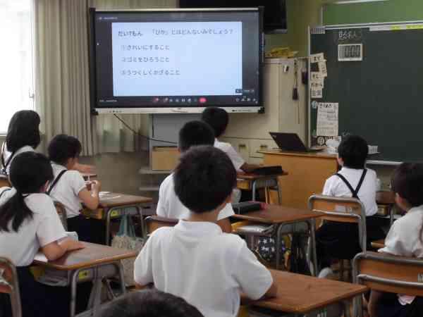 今月の生活目標は「清潔に心がけよう」です。この目標のもと、美化委員会でお掃除に関するクイズをつくりました。クイズに答えながら、掃除の仕方や道具の正しい使い方がわかりましたね。