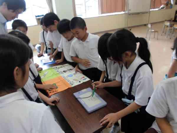 5年:学校の中のユニバーサルデザインを探して記録。自動手洗いを見つけました。