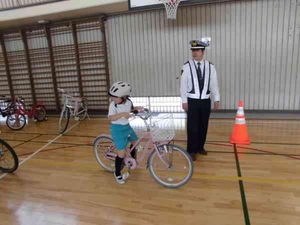 5月24日に警察・交通推進隊・学校運営協議会の方々に教えていただきながら、自転車教室が行われました。発進するときは必ず後ろから車が来ないか確認する、横断歩道や見通しの悪い曲がり角では一旦停止など大切なことを丁寧に教えていただきました。今回の学びを活かして安全に自転車に乗ってください。