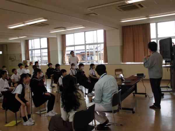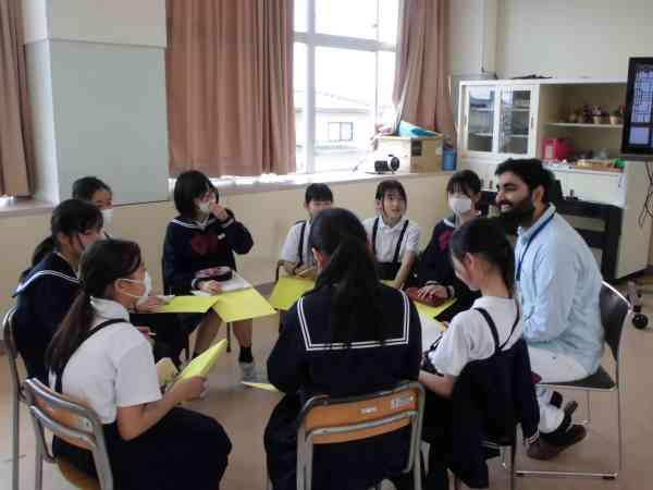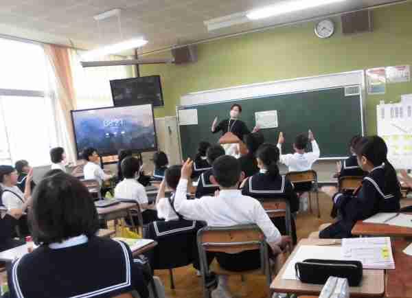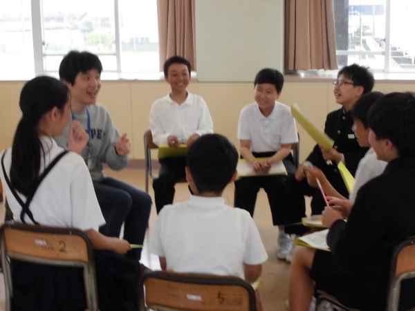 JAISTの学生さんをお招きして国際交流の授業が行われました。インドや韓国などいろんな国の食べ物やそれぞれの国の小学校の様子等を教えていただきました。そのあとは、グループに分かれて英語で自己紹介をしたり質問をしたりしました。学んだ英語で会話を楽しむことができましたね。