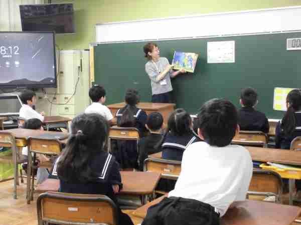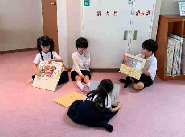 図書ボランティアさんによる「朝の読み聞かせ」がはじまりました。絵本や紙芝居、英語の絵本、手作りのお話など、いろんなお話が聞けてとっても楽しい時間です。