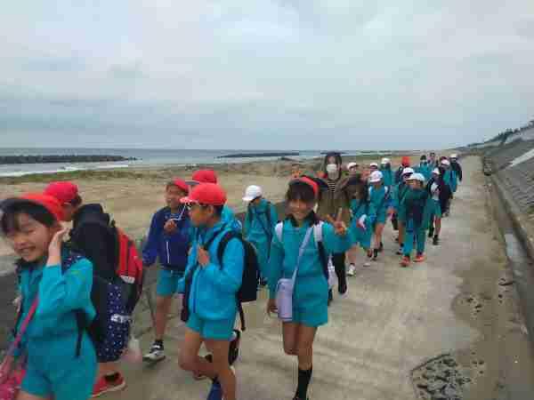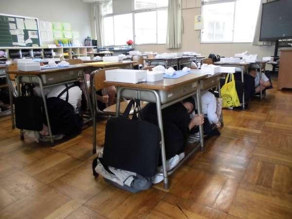 地震が起こった想定で避難訓練を行いました。揺れがある間は机の脚をしっかり持って自分の身を守ります。先生のお話を聞いた後、津波が来た場合の避難の仕方と避難場所も確認しました。全員静かに素早く避難することができましたね。また一つ、自分の命を守る方法を覚えました。