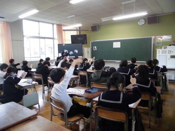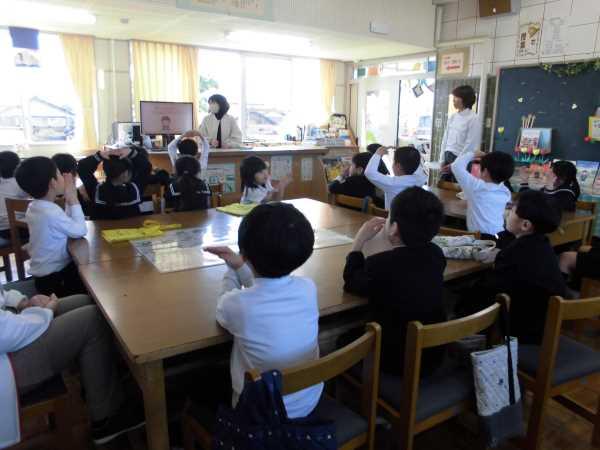 2年:図書室のオリエンテーション。図書室の使い方を〇×クイズで確認。