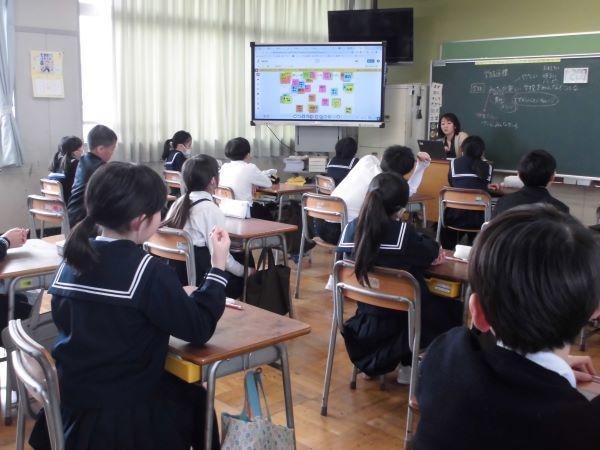 5の1「学活」一人一人の意見を出し合い、学級目標をみんなで考えています。