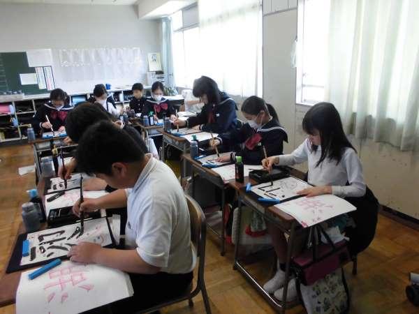 6年「書写」筆遣いに気を付けて集中して書きます。書く姿勢もばっちりです。